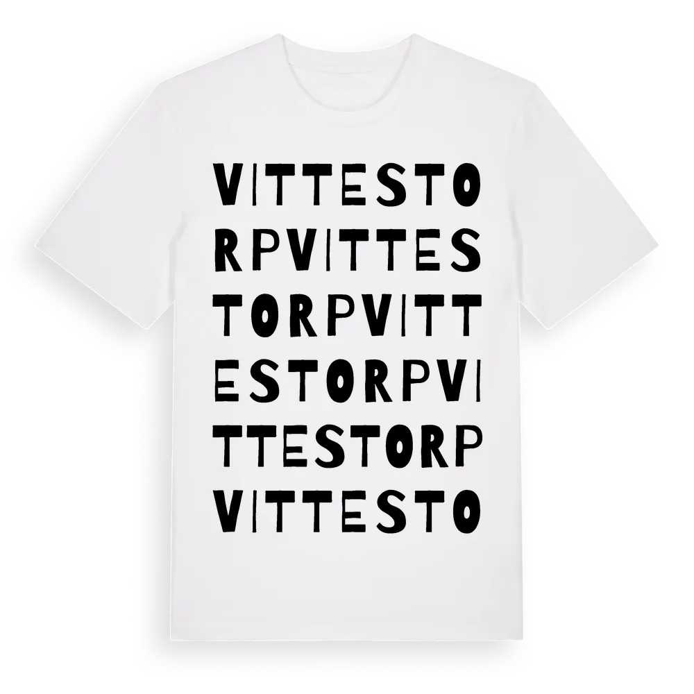 Vittestorp ordlek t-shirt är inspirerad av Vittestorp i Östergötlands län, Sverige. Tröjan är designad för dig som har en speciell koppling till platsen – oavsett om du bor här, har rötterna här eller bara älskar Vittestorp.