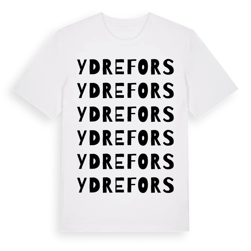 Ydrefors ordlek t-shirt är inspirerad av byn Ydrefors i Östergötlands län, Sverige. Tröjan är designad för dig som har en speciell koppling till platsen – oavsett om du bor här, har rötterna här eller bara älskar Ydrefors.