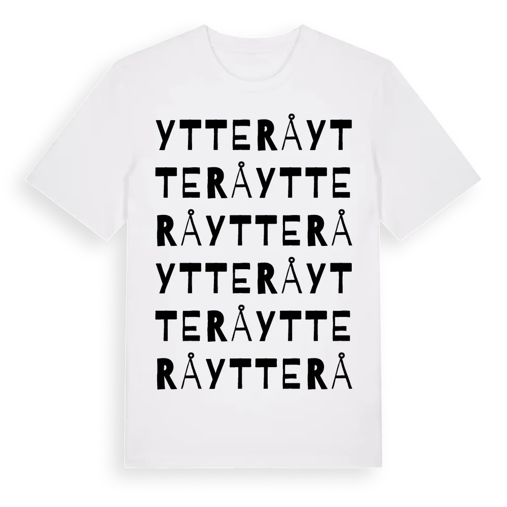 Ytterå ordlek t-shirt är inspirerad av byn Ytterå i Östergötlands län, Sverige. Tröjan är designad för dig som har en speciell koppling till platsen – oavsett om du bor här, har rötterna här eller bara älskar Ytterå.