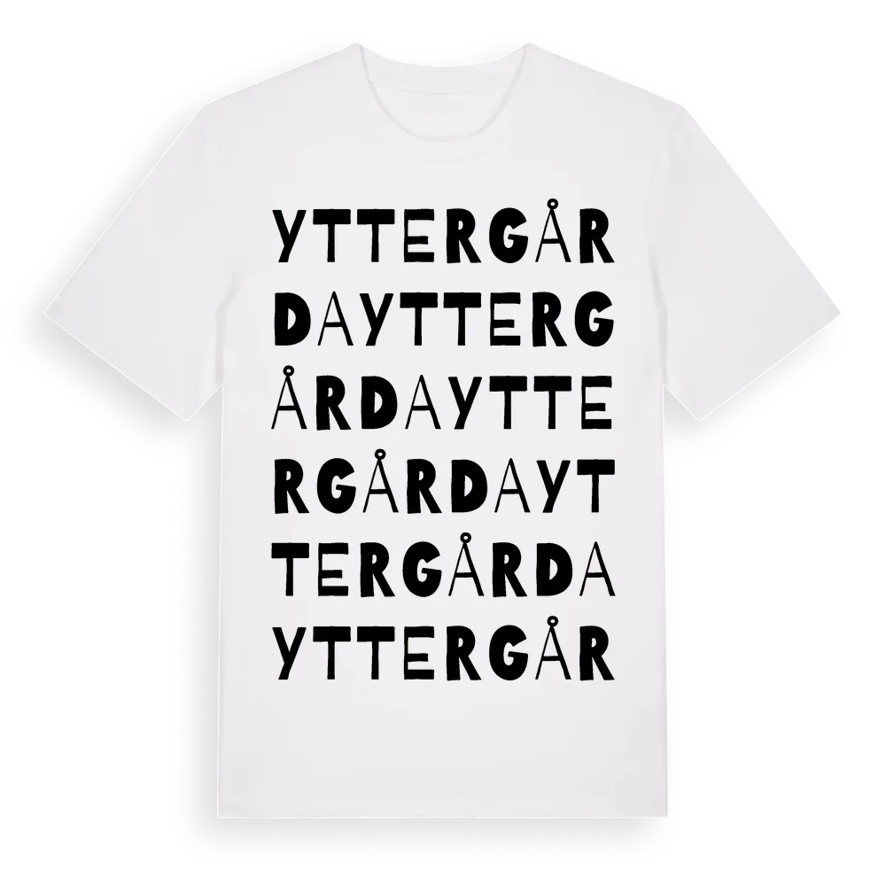 Yttergårda ordlek t-shirt är inspirerad av Yttergårda i Östergötlands län, Sverige. Tröjan är designad för dig som har en speciell koppling till platsen – oavsett om du bor här, har rötterna här eller bara älskar Yttergårda.