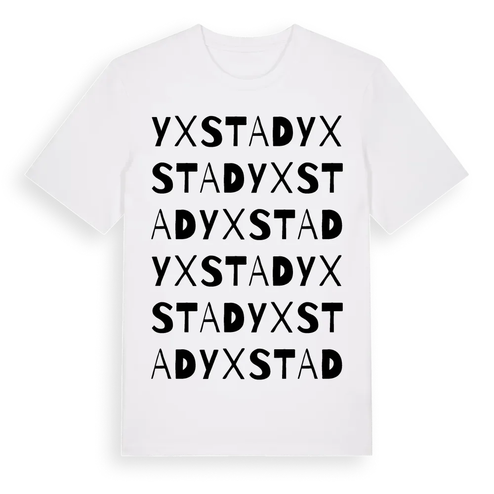 Yxstad ordlek t-shirt är inspirerad av byn Yxstad i Östergötlands län, Sverige. Tröjan är designad för dig som har en speciell koppling till platsen – oavsett om du bor här, har rötterna här eller bara älskar Yxstad.