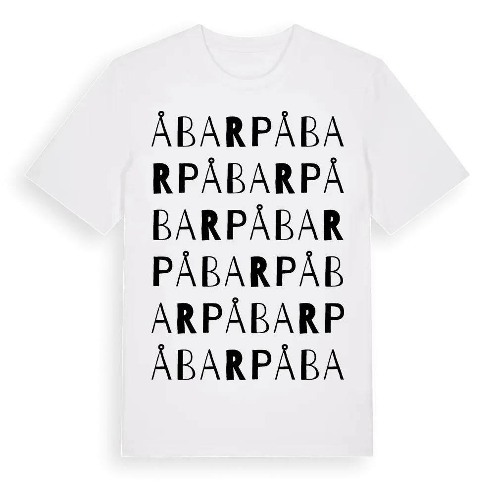 Åbarp ordlek t-shirt är inspirerad av byn Åbarp i Skåne län, Sverige. Tröjan är designad för dig som har en speciell koppling till platsen – oavsett om du bor här, har rötterna här eller bara älskar Åbarp.