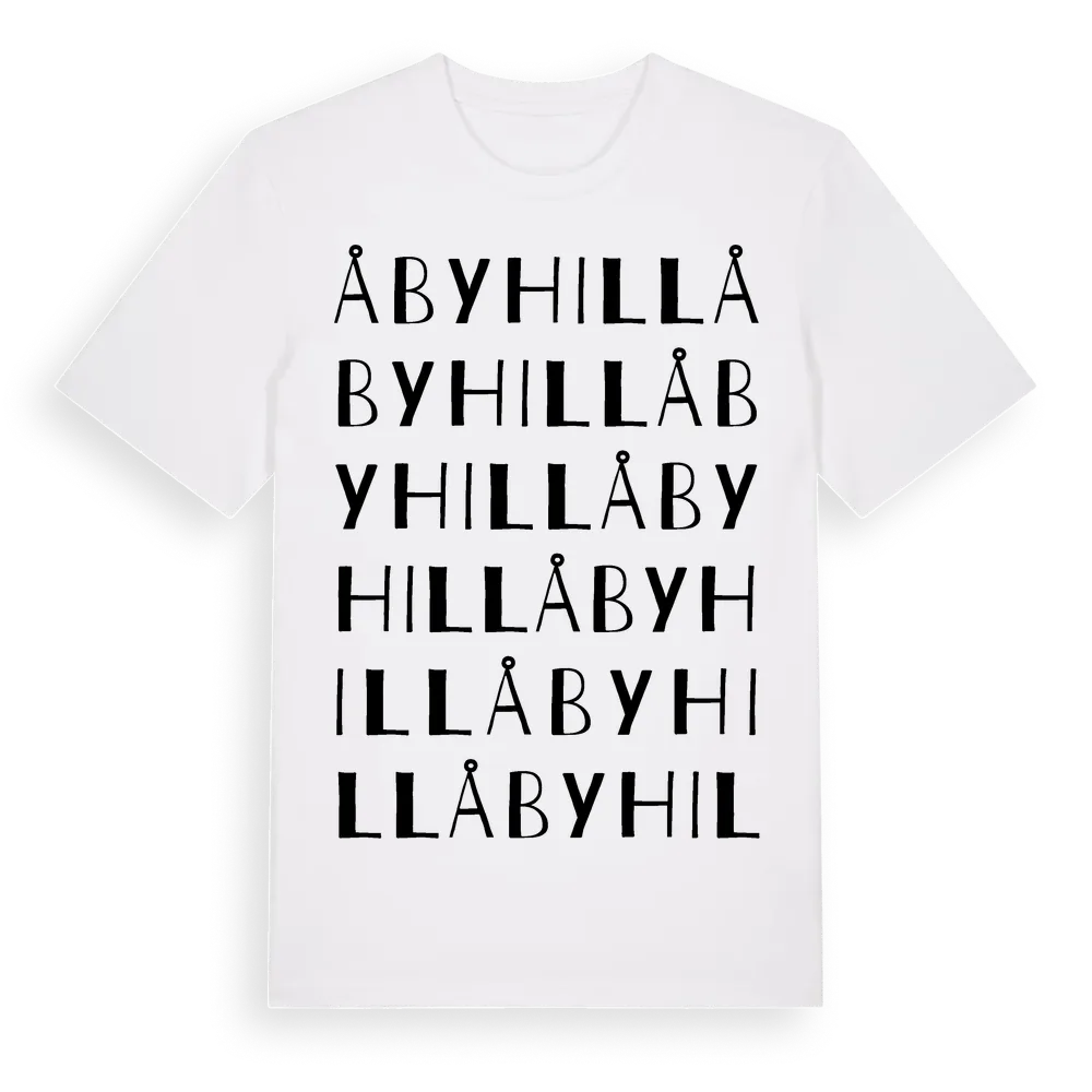 Åbyhill ordlek t-shirt är inspirerad av Åbyhill i Skåne län, Sverige. Tröjan är designad för dig som har en speciell koppling till platsen – oavsett om du bor här, har rötterna här eller bara älskar Åbyhill.
