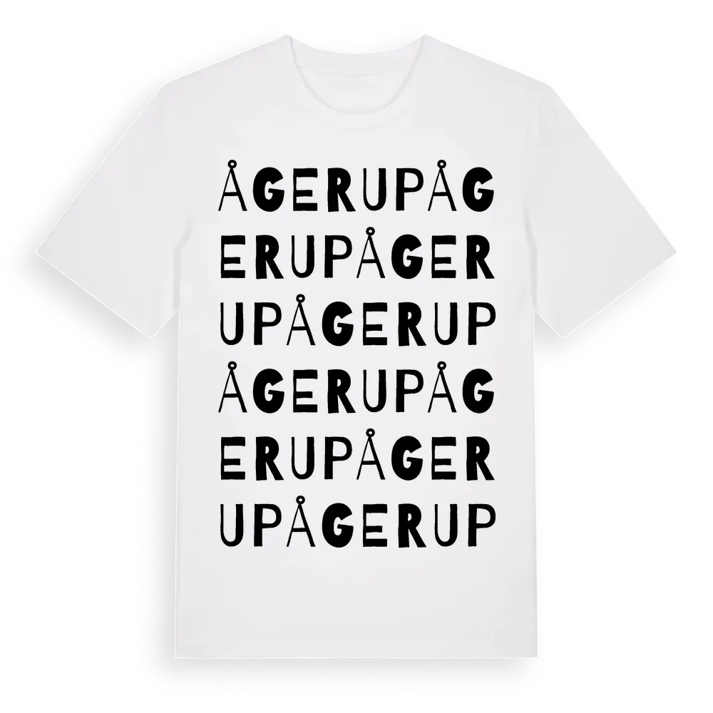 Ågerup ordlek t-shirt är inspirerad av Ågerup i Skåne län, Sverige. Tröjan är designad för dig som har en speciell koppling till platsen – oavsett om du bor här, har rötterna här eller bara älskar Ågerup.