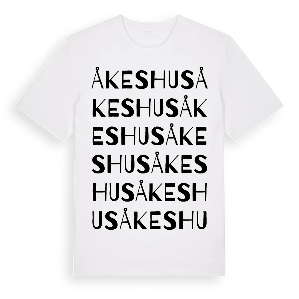 Åkeshus ordlek t-shirt är inspirerad av Åkeshus i Skåne län, Sverige. Tröjan är designad för dig som har en speciell koppling till platsen – oavsett om du bor här, har rötterna här eller bara älskar Åkeshus.