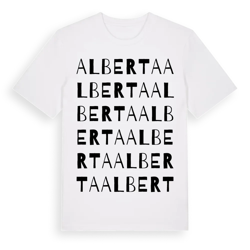 Alberta ordlek t-shirt är inspirerad av byn Alberta i Skåne län, Sverige. Tröjan är designad för dig som har en speciell koppling till platsen – oavsett om du bor här, har rötterna här eller bara älskar Alberta.