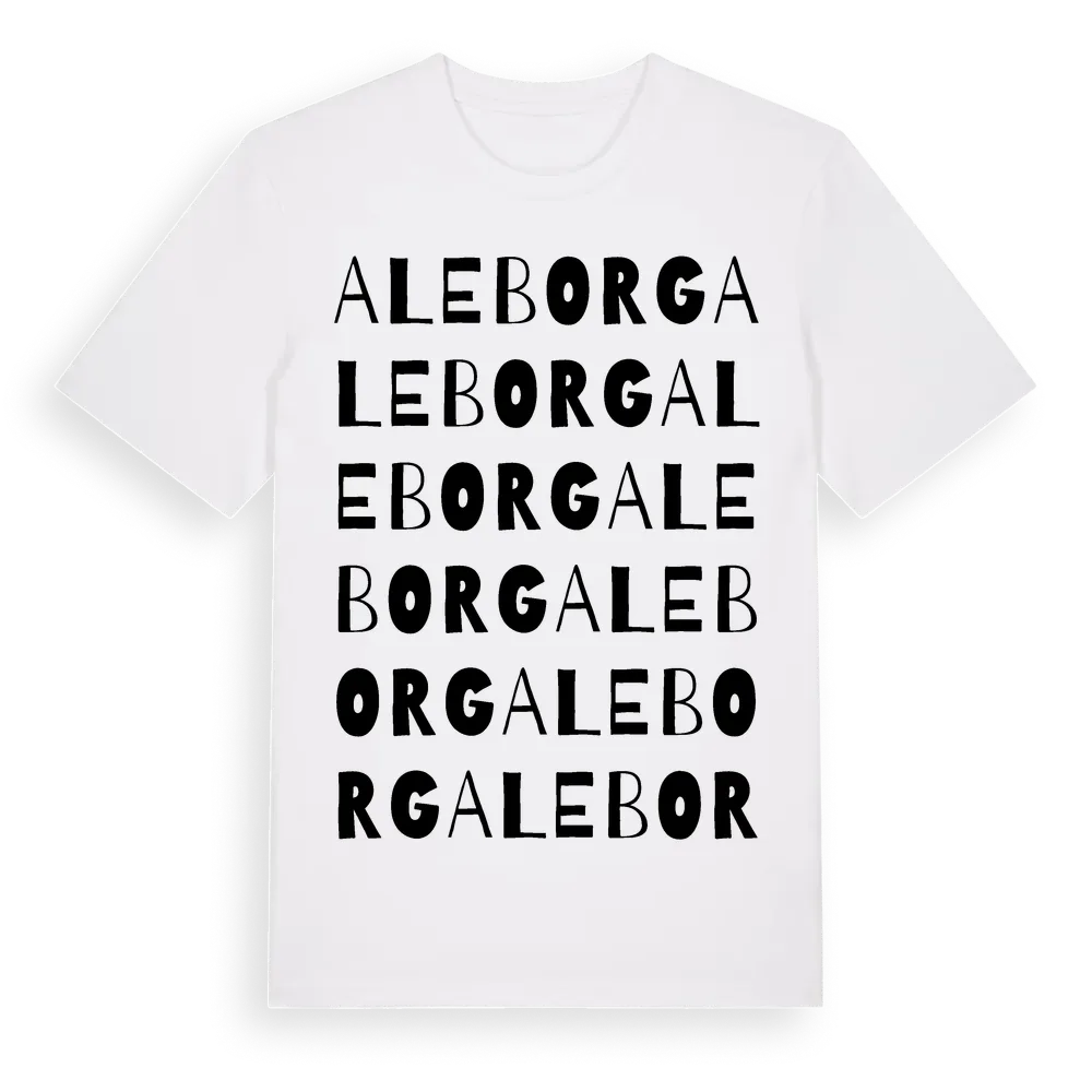 Aleborg ordlek t-shirt är inspirerad av Aleborg i Skåne län, Sverige. Tröjan är designad för dig som har en speciell koppling till platsen – oavsett om du bor här, har rötterna här eller bara älskar Aleborg.