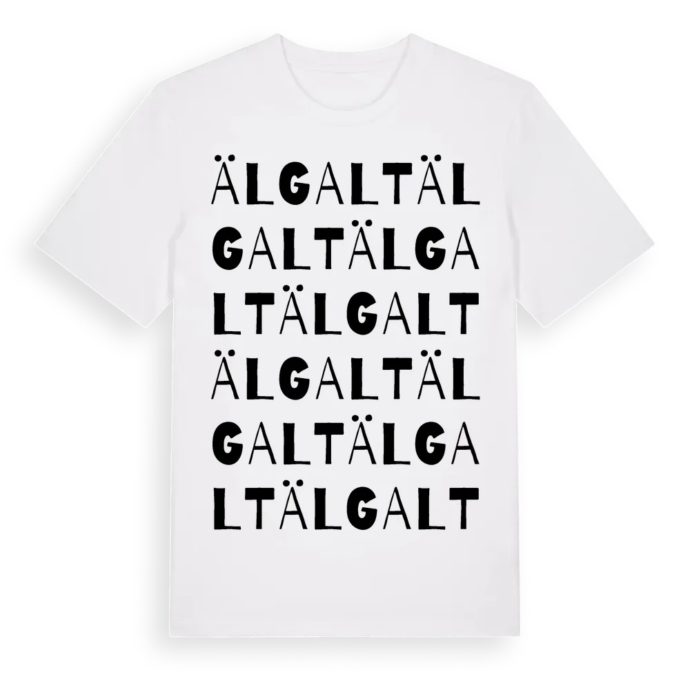 Älgalt ordlek t-shirt är inspirerad av byn Älgalt i Skåne län, Sverige. Tröjan är designad för dig som har en speciell koppling till platsen – oavsett om du bor här, har rötterna här eller bara älskar Älgalt.