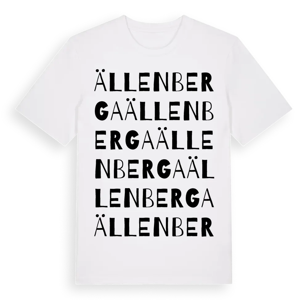 Ällenberga ordlek t-shirt är inspirerad av byn Ällenberga i Skåne län, Sverige. Tröjan är designad för dig som har en speciell koppling till platsen – oavsett om du bor här, har rötterna här eller bara älskar Ällenberga.
