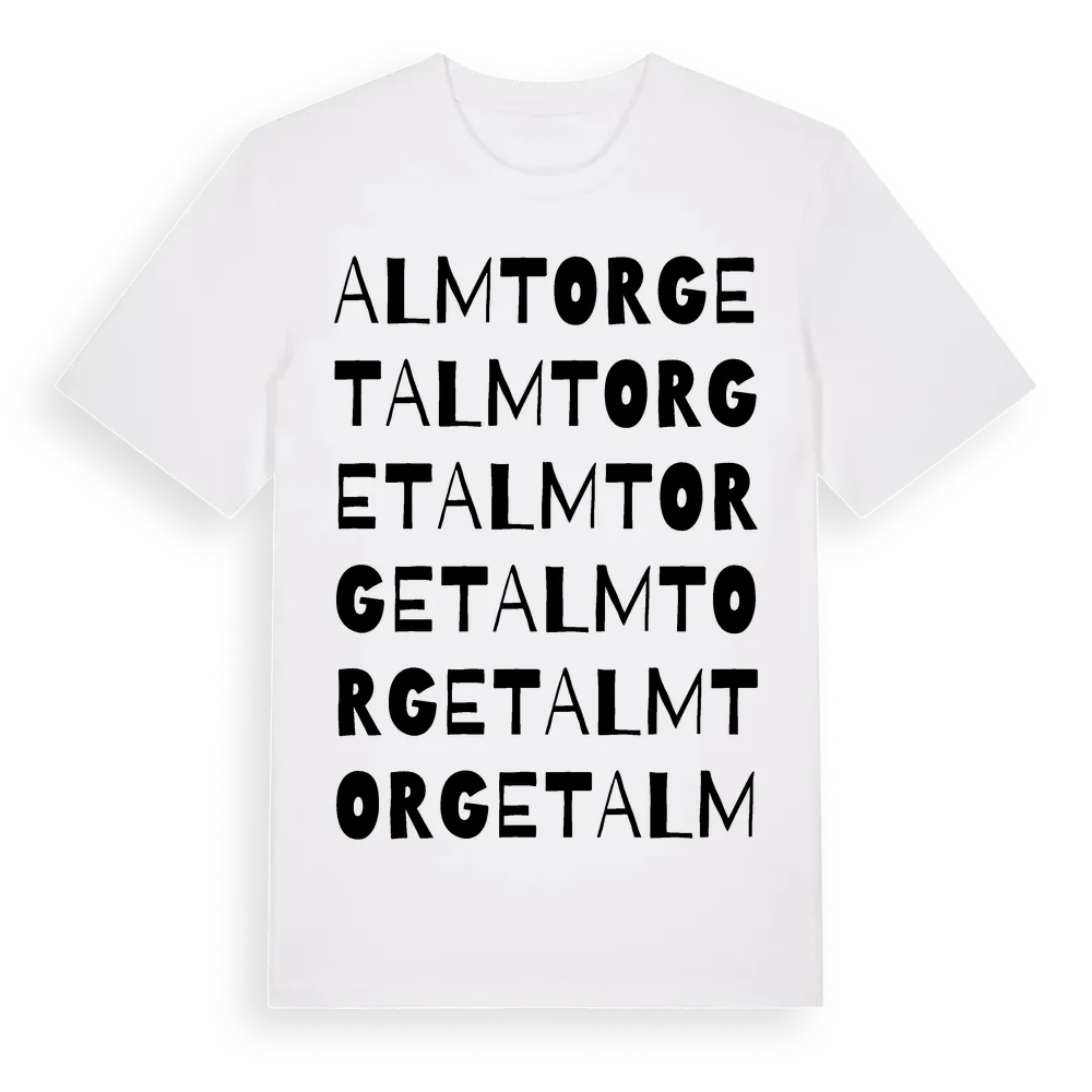 Almtorget ordlek t-shirt är inspirerad av Almtorget i Skåne län, Sverige. Tröjan är designad för dig som har en speciell koppling till platsen – oavsett om du bor här, har rötterna här eller bara älskar Almtorget.