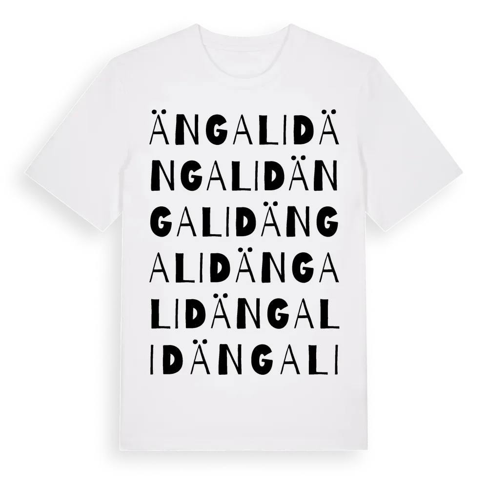 Ängalid ordlek t-shirt är inspirerad av Ängalid i Skåne län, Sverige. Tröjan är designad för dig som har en speciell koppling till platsen – oavsett om du bor här, har rötterna här eller bara älskar Ängalid.
