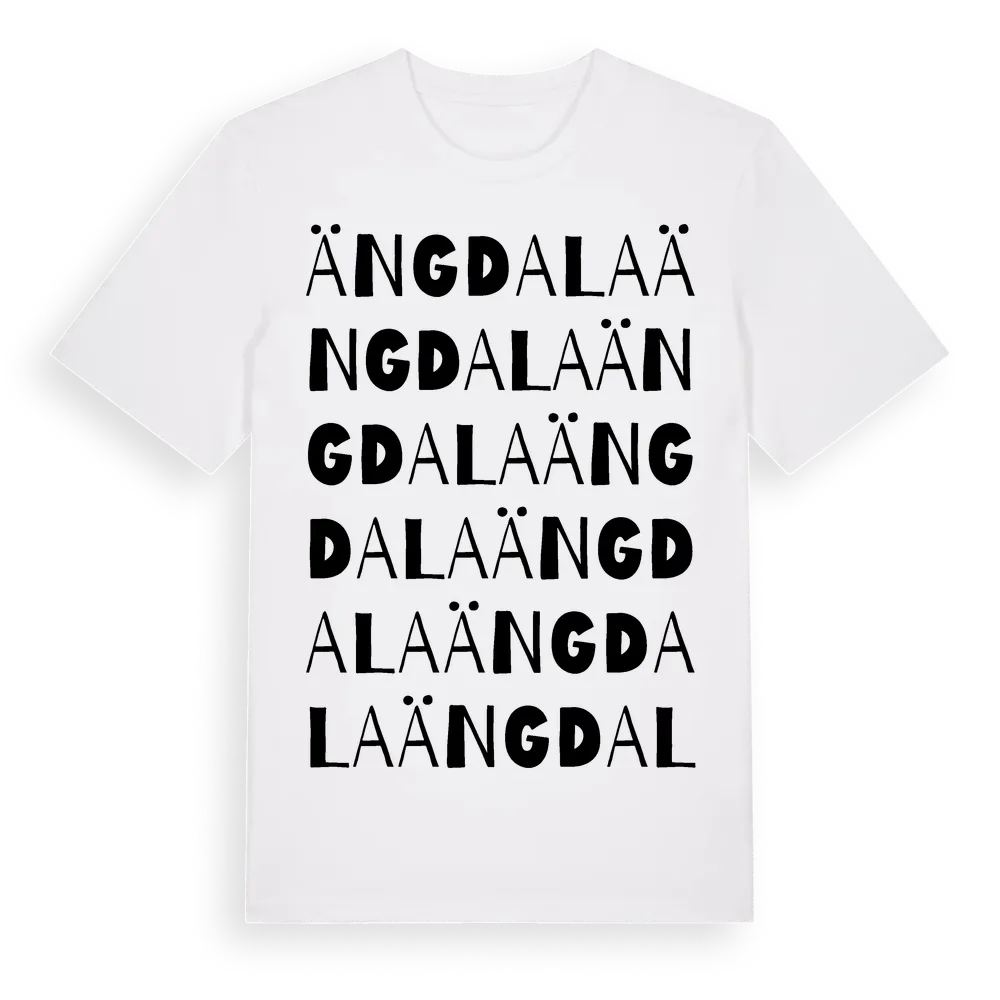 Ängdala ordlek t-shirt är inspirerad av Ängdala i Skåne län, Sverige. Tröjan är designad för dig som har en speciell koppling till platsen – oavsett om du bor här, har rötterna här eller bara älskar Ängdala.