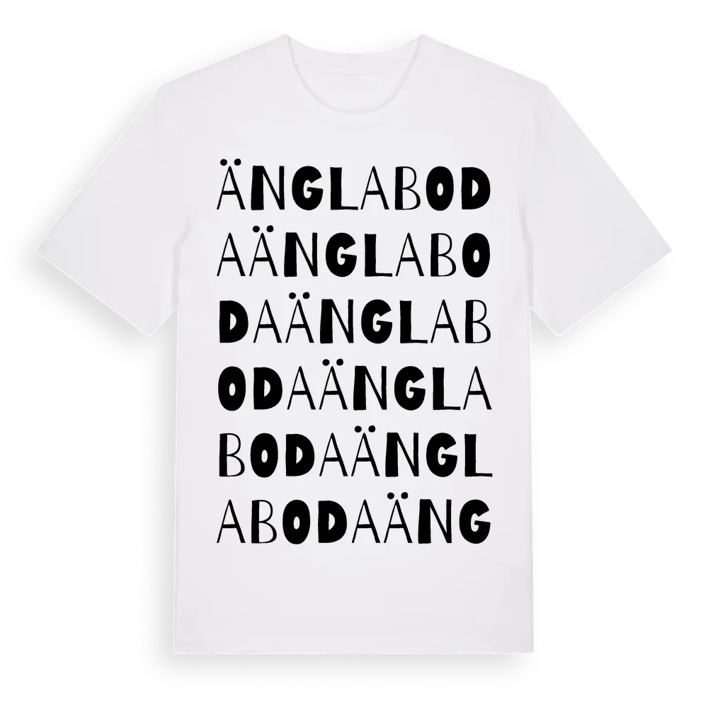 Änglaboda ordlek t-shirt är inspirerad av Änglaboda i Skåne län, Sverige. Tröjan är designad för dig som har en speciell koppling till platsen – oavsett om du bor här, har rötterna här eller bara älskar Änglaboda.
