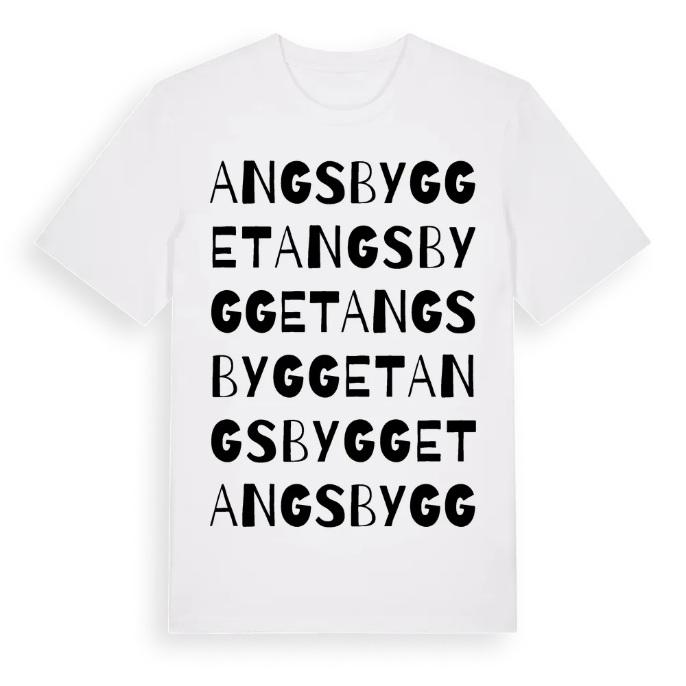 Angsbygget ordlek t-shirt är inspirerad av byn Angsbygget i Skåne län, Sverige. Tröjan är designad för dig som har en speciell koppling till platsen – oavsett om du bor här, har rötterna här eller bara älskar Angsbygget.