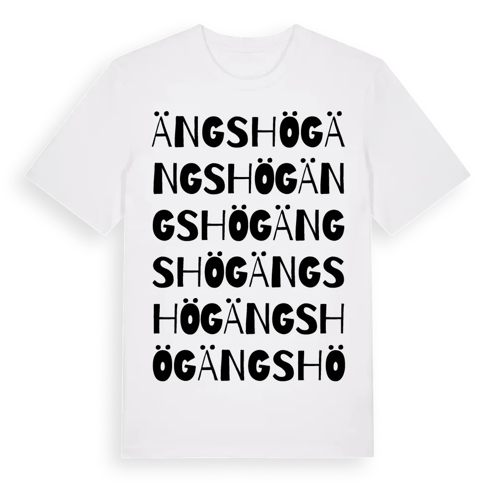 Ängshög ordlek t-shirt är inspirerad av Ängshög i Skåne län, Sverige. Tröjan är designad för dig som har en speciell koppling till platsen – oavsett om du bor här, har rötterna här eller bara älskar Ängshög.