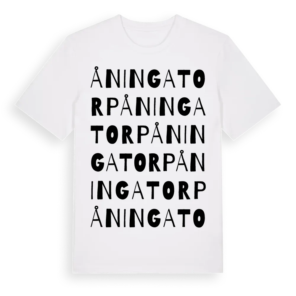 Åningatorp ordlek t-shirt är inspirerad av Åningatorp i Skåne län, Sverige. Tröjan är designad för dig som har en speciell koppling till platsen – oavsett om du bor här, har rötterna här eller bara älskar Åningatorp.