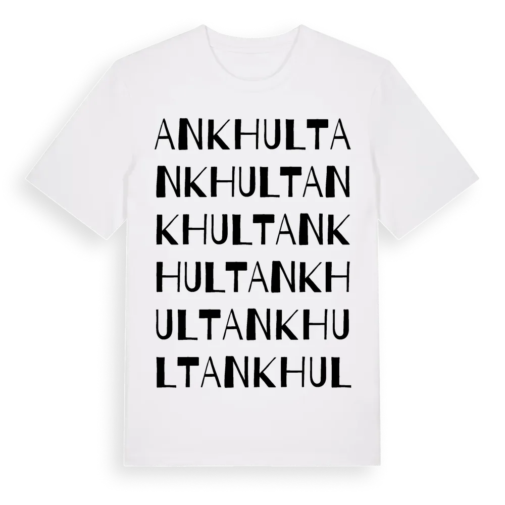 Ankhult ordlek t-shirt är inspirerad av byn Ankhult i Skåne län, Sverige. Tröjan är designad för dig som har en speciell koppling till platsen – oavsett om du bor här, har rötterna här eller bara älskar Ankhult.