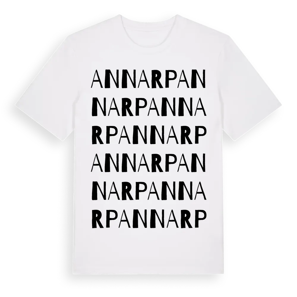 Annarp ordlek t-shirt är inspirerad av byn Annarp i Skåne län, Sverige. Tröjan är designad för dig som har en speciell koppling till platsen – oavsett om du bor här, har rötterna här eller bara älskar Annarp.
