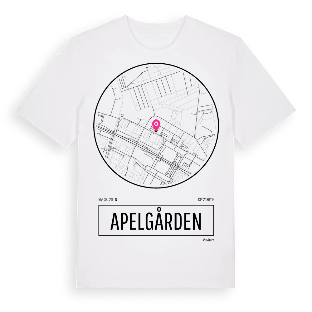 Apelgården t-shirt är inspirerad av stadsdelen Apelgården i Skåne län, Sverige. Tröjan är designad för dig som har en speciell koppling till platsen – oavsett om du bor här, har rötterna här eller bara älskar Apelgården.
