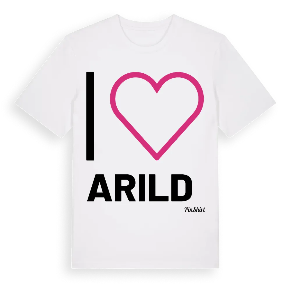 Det klassiska "I ❤ Arild"-motivet i stort format som täcker hela bröstet. För dig som vill visa kärleken till Arild på riktigt. Premium bomull, unisex – från byn Arild i Skåne län.