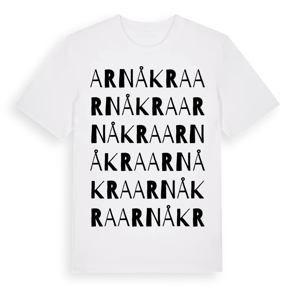 Arnåkra ordlek t-shirt är inspirerad av Arnåkra i Skåne län, Sverige. Tröjan är designad för dig som har en speciell koppling till platsen – oavsett om du bor här, har rötterna här eller bara älskar Arnåkra.