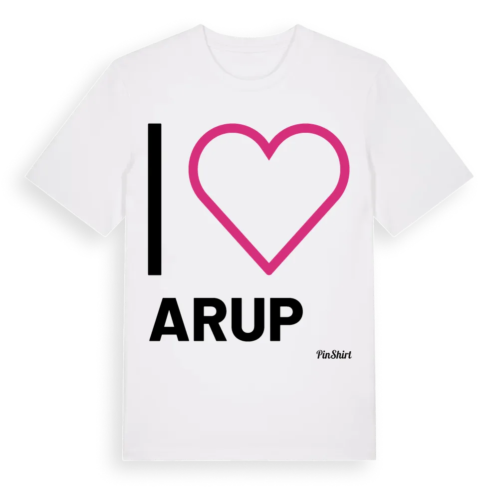 Det klassiska "I ❤ Arup"-motivet i stort format som täcker hela bröstet. För dig som vill visa kärleken till Arup på riktigt. Premium bomull, unisex – från byn Arup i Skåne län.