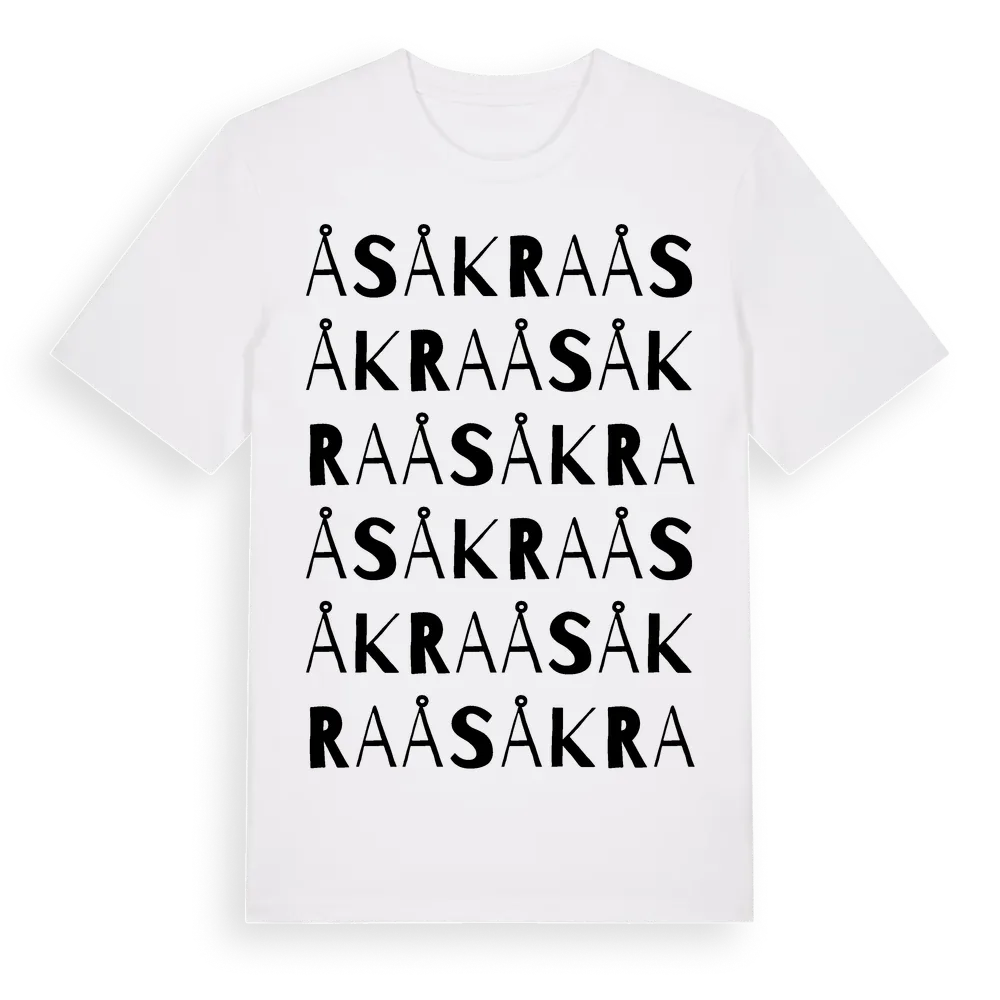 Åsåkra ordlek t-shirt är inspirerad av Åsåkra i Skåne län, Sverige. Tröjan är designad för dig som har en speciell koppling till platsen – oavsett om du bor här, har rötterna här eller bara älskar Åsåkra.