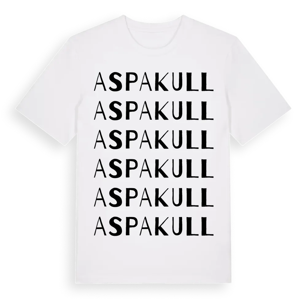 Aspakull ordlek t-shirt är inspirerad av Aspakull i Skåne län, Sverige. Tröjan är designad för dig som har en speciell koppling till platsen – oavsett om du bor här, har rötterna här eller bara älskar Aspakull.