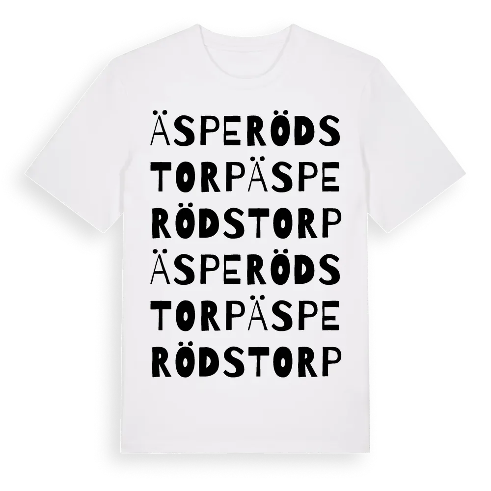 Äsperödstorp ordlek t-shirt är inspirerad av Äsperödstorp i Skåne län, Sverige. Tröjan är designad för dig som har en speciell koppling till platsen – oavsett om du bor här, har rötterna här eller bara älskar Äsperödstorp.