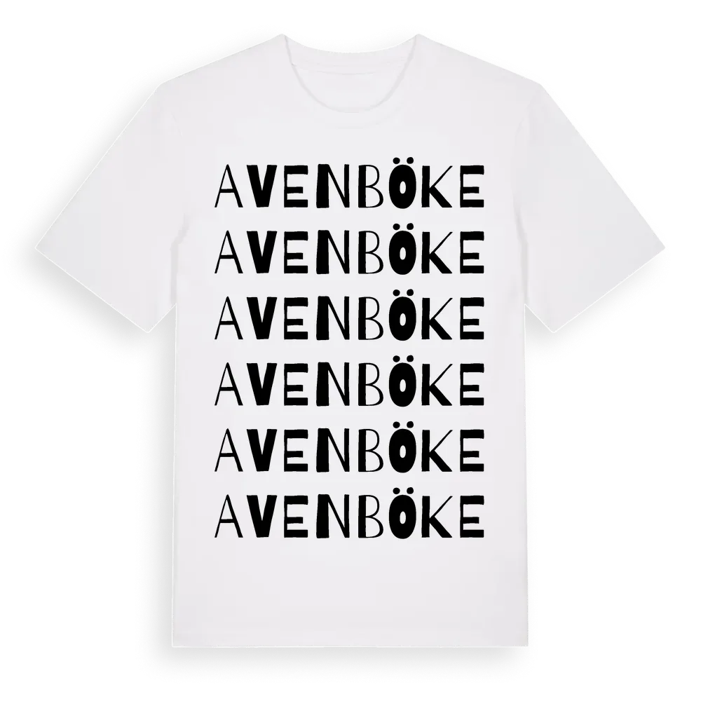 Avenböke ordlek t-shirt är inspirerad av Avenböke i Skåne län, Sverige. Tröjan är designad för dig som har en speciell koppling till platsen – oavsett om du bor här, har rötterna här eller bara älskar Avenböke.