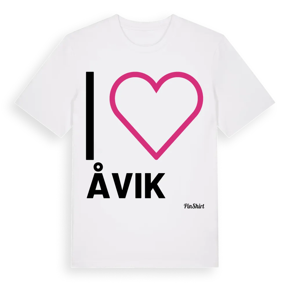 Det klassiska "I ❤ Åvik"-motivet i stort format som täcker hela bröstet. För dig som vill visa kärleken till Åvik på riktigt. Premium bomull, unisex – från Åvik i Skåne län.