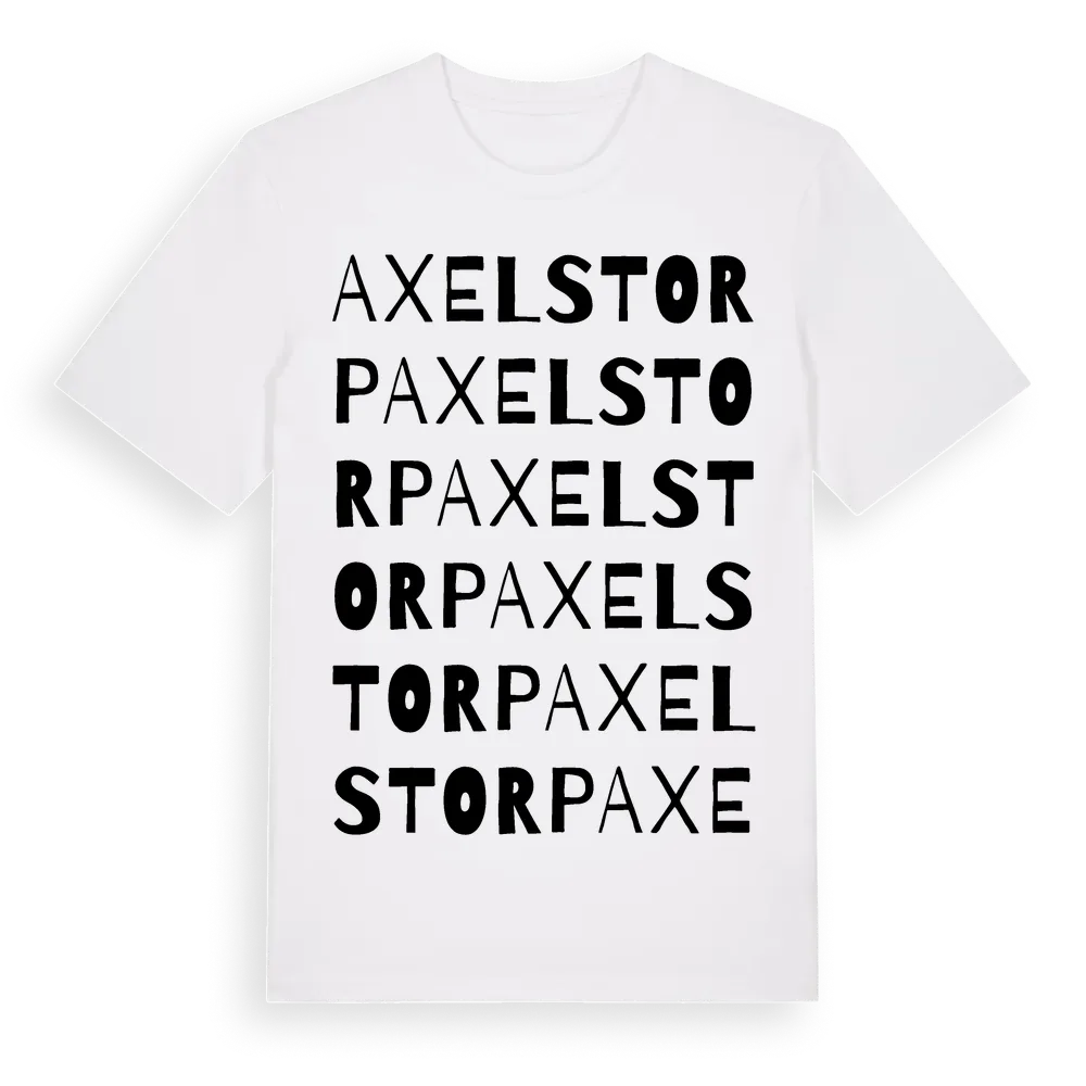 Axelstorp ordlek t-shirt är inspirerad av byn Axelstorp i Skåne län, Sverige. Tröjan är designad för dig som har en speciell koppling till platsen – oavsett om du bor här, har rötterna här eller bara älskar Axelstorp.