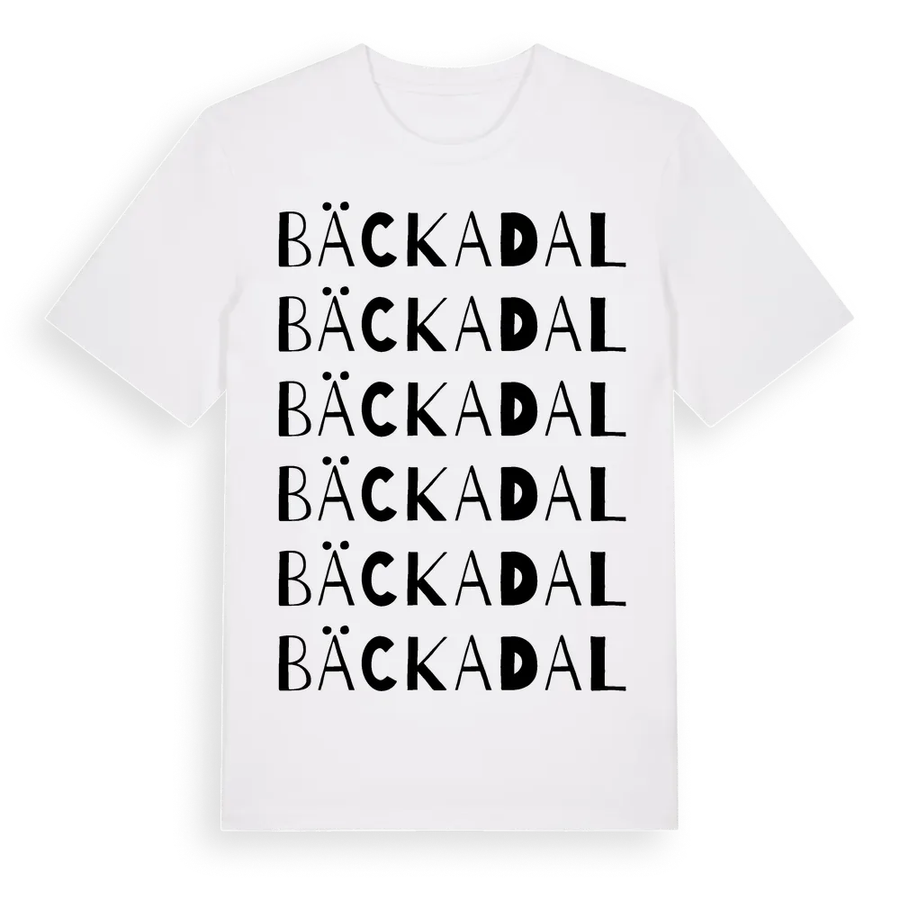 Bäckadal ordlek t-shirt är inspirerad av Bäckadal i Skåne län, Sverige. Tröjan är designad för dig som har en speciell koppling till platsen – oavsett om du bor här, har rötterna här eller bara älskar Bäckadal.