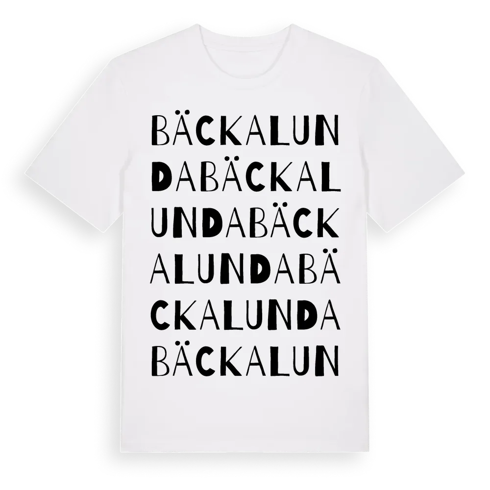 Bäckalunda ordlek t-shirt är inspirerad av Bäckalunda i Skåne län, Sverige. Tröjan är designad för dig som har en speciell koppling till platsen – oavsett om du bor här, har rötterna här eller bara älskar Bäckalunda.