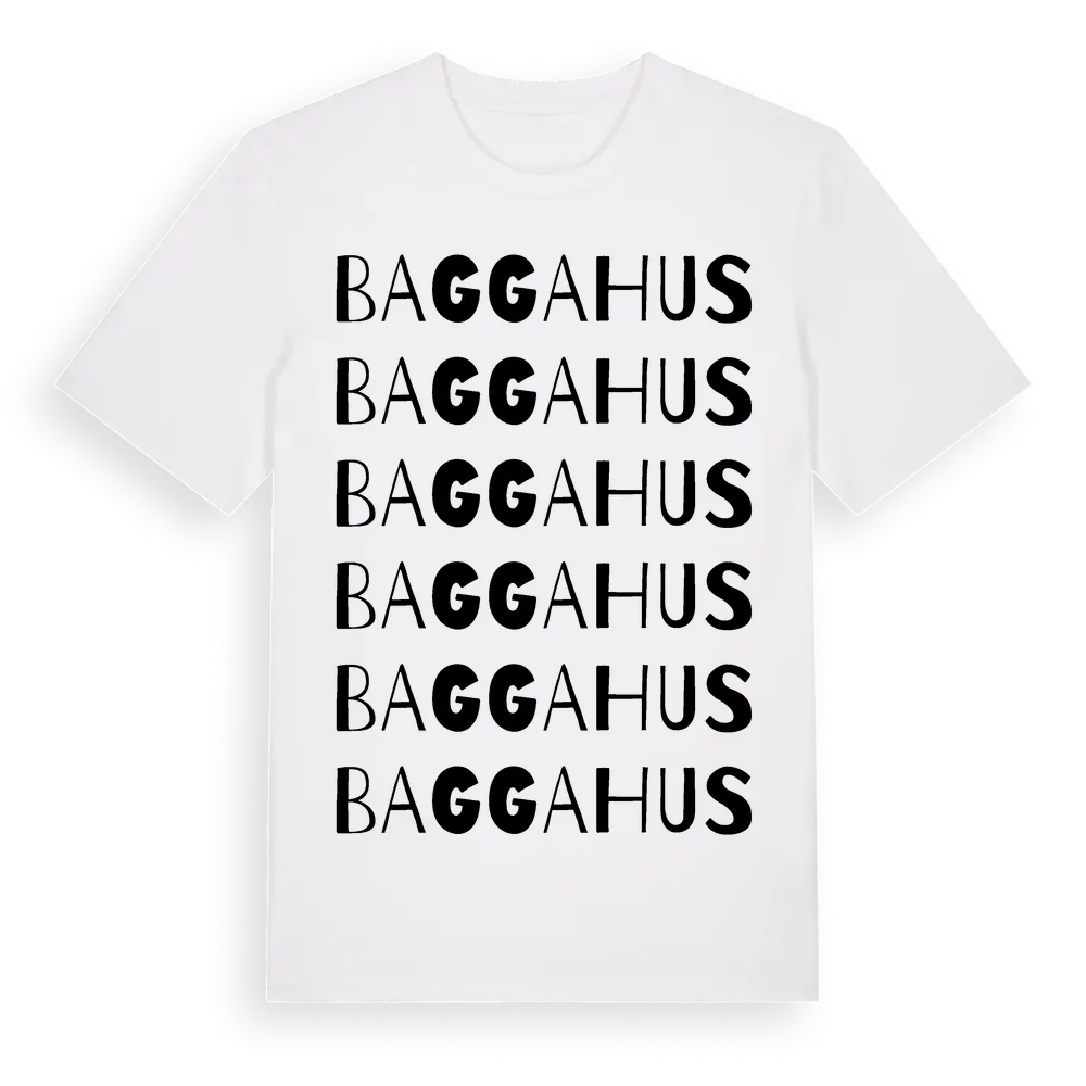 Baggahus ordlek t-shirt är inspirerad av byn Baggahus i Skåne län, Sverige. Tröjan är designad för dig som har en speciell koppling till platsen – oavsett om du bor här, har rötterna här eller bara älskar Baggahus.