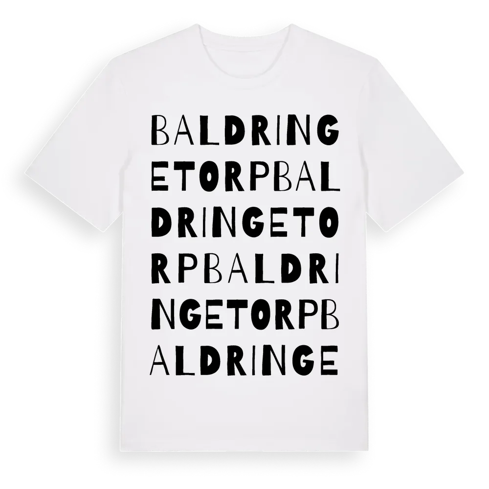 Baldringetorp ordlek t-shirt är inspirerad av byn Baldringetorp i Skåne län, Sverige. Tröjan är designad för dig som har en speciell koppling till platsen – oavsett om du bor här, har rötterna här eller bara älskar Baldringetorp.