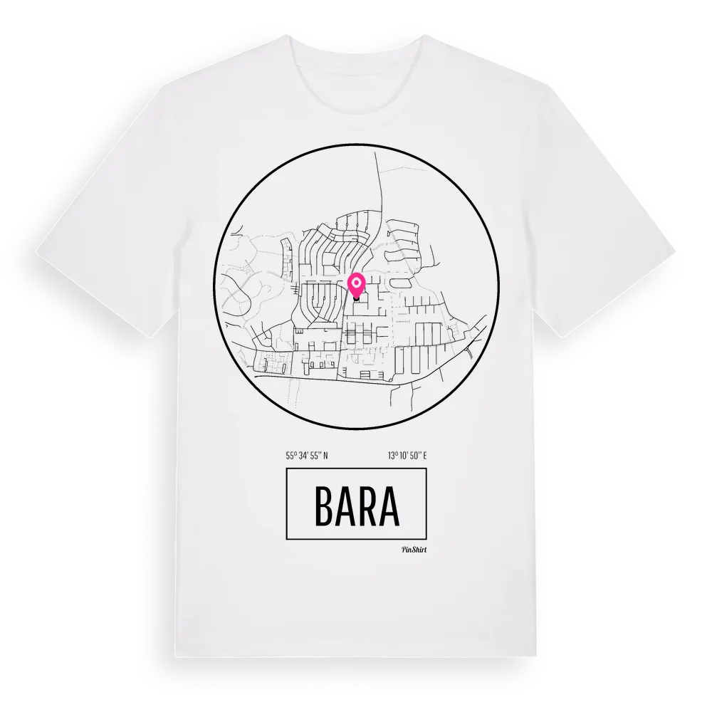 Bara t-shirt är inspirerad av byn Bara i Skåne län, Sverige. Tröjan är designad för dig som har en speciell koppling till platsen – oavsett om du bor här, har rötterna här eller bara älskar Bara.