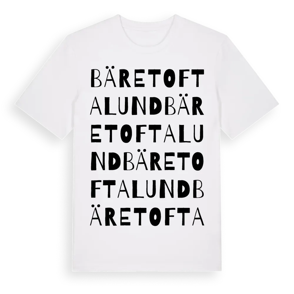 Bäretoftalund ordlek t-shirt är inspirerad av Bäretoftalund i Skåne län, Sverige. Tröjan är designad för dig som har en speciell koppling till platsen – oavsett om du bor här, har rötterna här eller bara älskar Bäretoftalund.