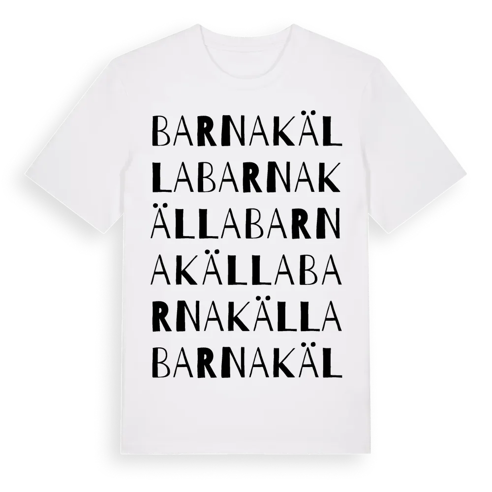 Barnakälla ordlek t-shirt är inspirerad av Barnakälla i Skåne län, Sverige. Tröjan är designad för dig som har en speciell koppling till platsen – oavsett om du bor här, har rötterna här eller bara älskar Barnakälla.