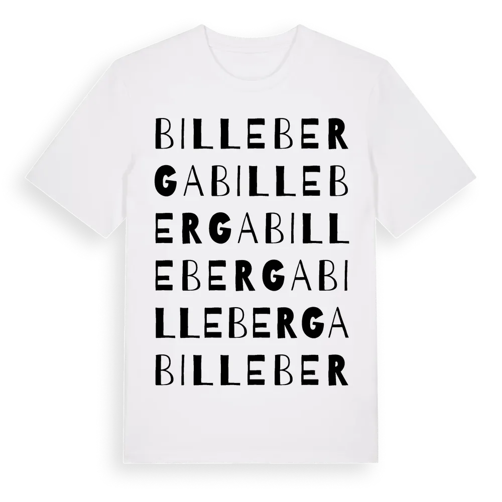 Billeberga ordlek t-shirt är inspirerad av byn Billeberga i Skåne län, Sverige. Tröjan är designad för dig som har en speciell koppling till platsen – oavsett om du bor här, har rötterna här eller bara älskar Billeberga.