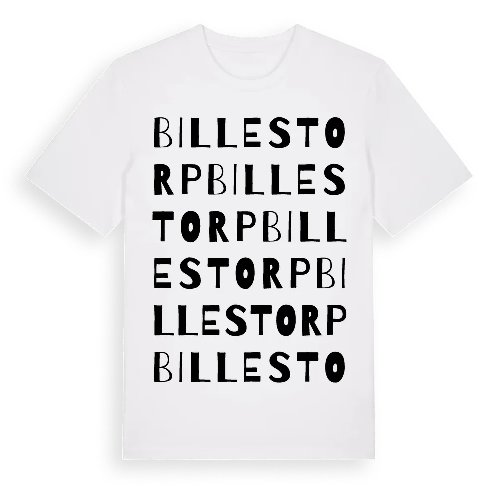 Billestorp ordlek t-shirt är inspirerad av Billestorp i Skåne län, Sverige. Tröjan är designad för dig som har en speciell koppling till platsen – oavsett om du bor här, har rötterna här eller bara älskar Billestorp.