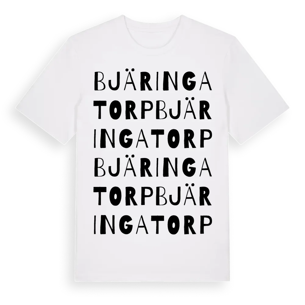 Bjäringatorp ordlek t-shirt är inspirerad av Bjäringatorp i Skåne län, Sverige. Tröjan är designad för dig som har en speciell koppling till platsen – oavsett om du bor här, har rötterna här eller bara älskar Bjäringatorp.
