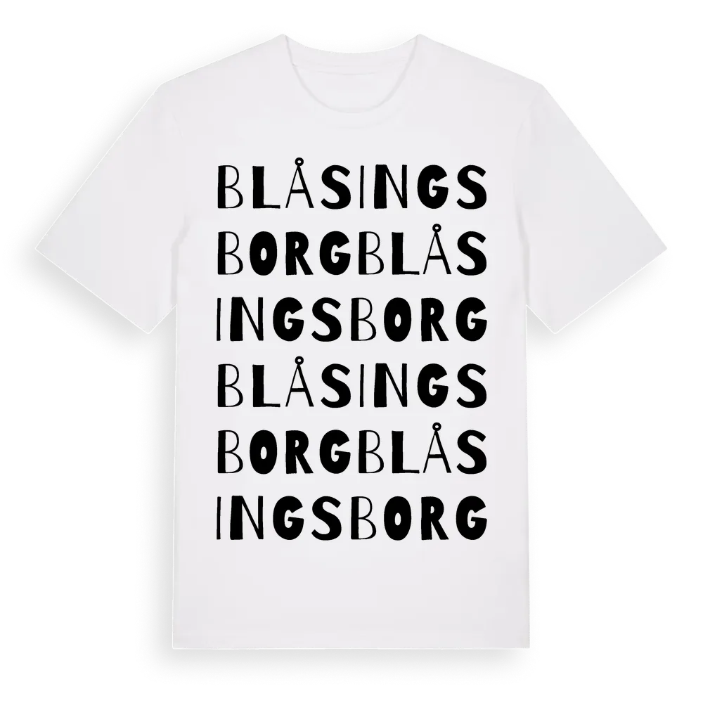 Blåsingsborg ordlek t-shirt är inspirerad av Blåsingsborg i Skåne län, Sverige. Tröjan är designad för dig som har en speciell koppling till platsen – oavsett om du bor här, har rötterna här eller bara älskar Blåsingsborg.