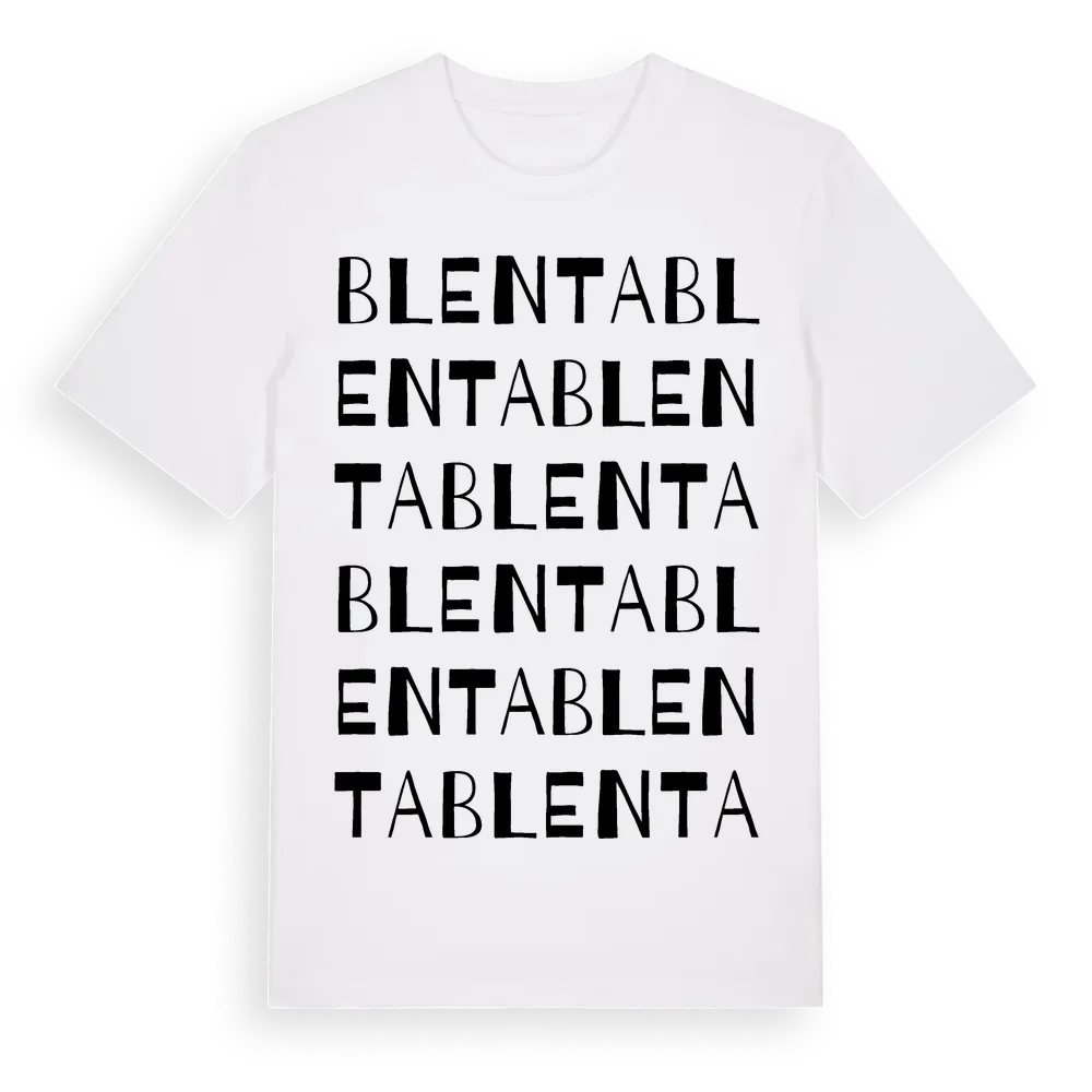 Blenta ordlek t-shirt är inspirerad av byn Blenta i Skåne län, Sverige. Tröjan är designad för dig som har en speciell koppling till platsen – oavsett om du bor här, har rötterna här eller bara älskar Blenta.