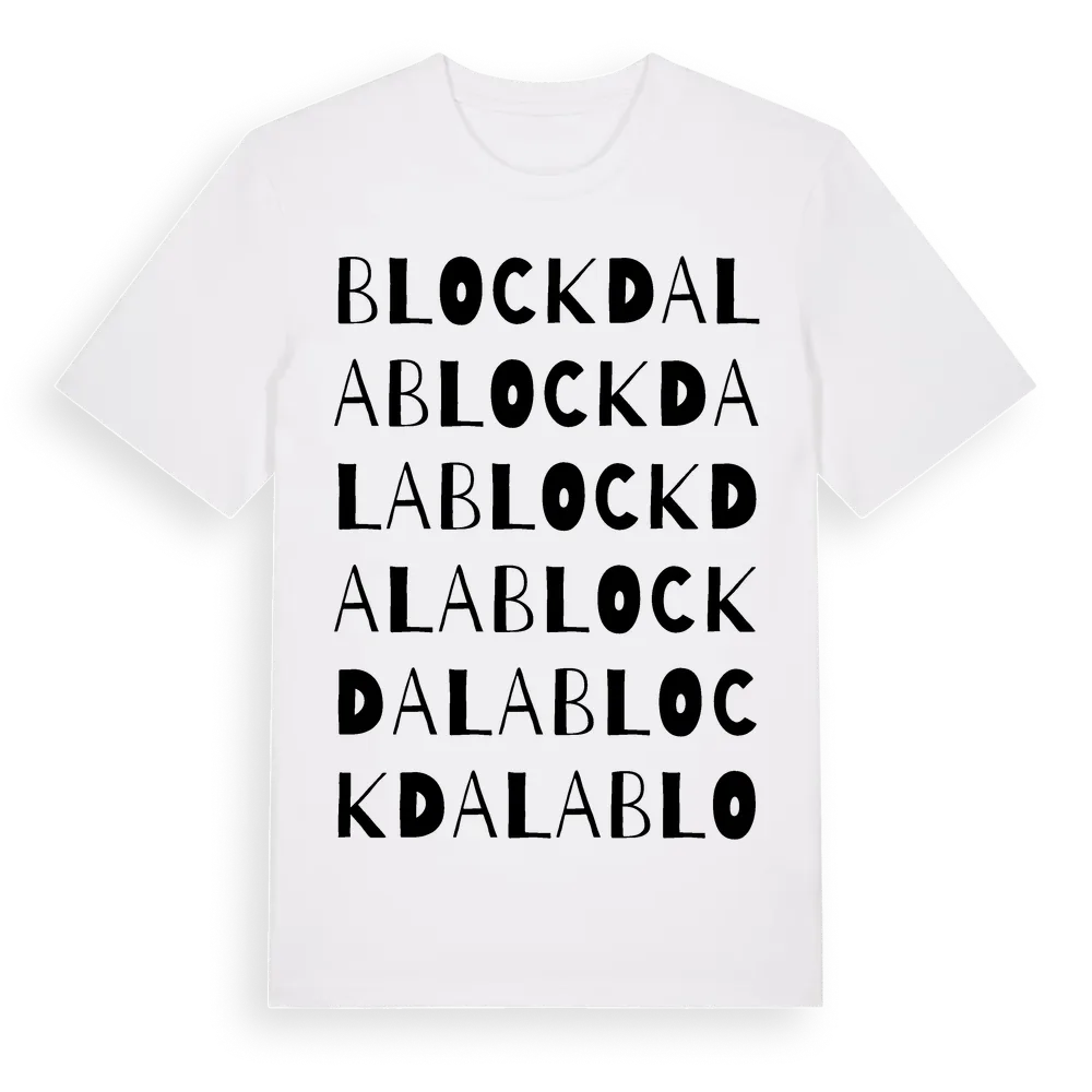 Blockdala ordlek t-shirt är inspirerad av Blockdala i Skåne län, Sverige. Tröjan är designad för dig som har en speciell koppling till platsen – oavsett om du bor här, har rötterna här eller bara älskar Blockdala.