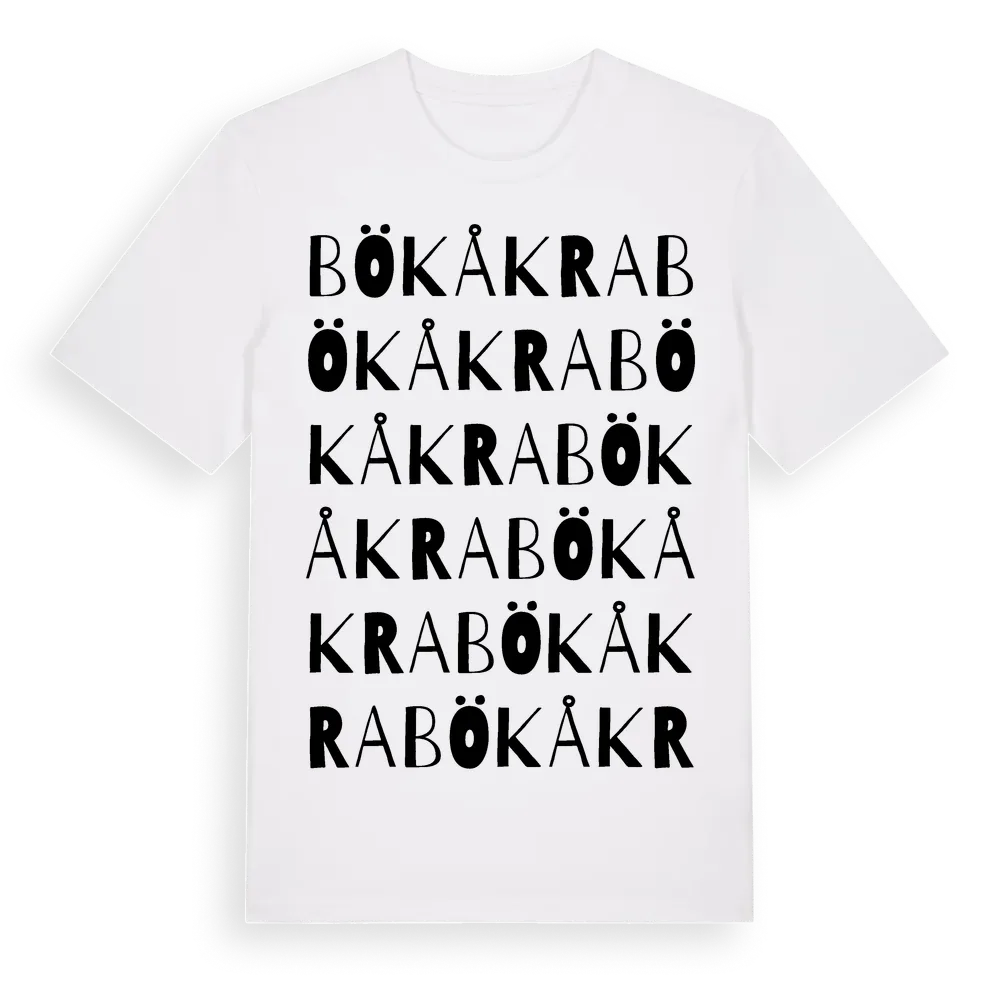 Bökåkra ordlek t-shirt är inspirerad av byn Bökåkra i Skåne län, Sverige. Tröjan är designad för dig som har en speciell koppling till platsen – oavsett om du bor här, har rötterna här eller bara älskar Bökåkra.