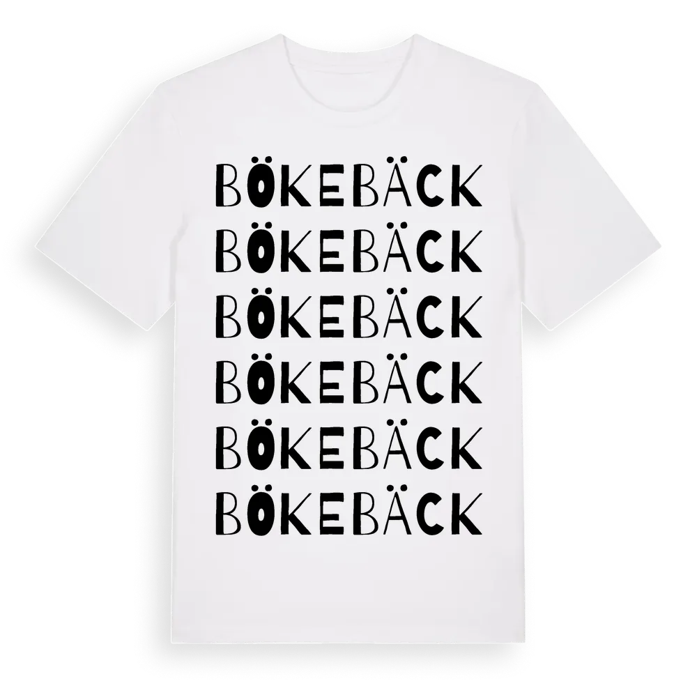 Bökebäck ordlek t-shirt är inspirerad av byn Bökebäck i Skåne län, Sverige. Tröjan är designad för dig som har en speciell koppling till platsen – oavsett om du bor här, har rötterna här eller bara älskar Bökebäck.