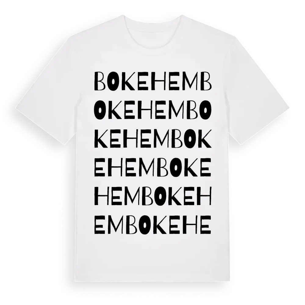 Bokehem ordlek t-shirt är inspirerad av Bokehem i Skåne län, Sverige. Tröjan är designad för dig som har en speciell koppling till platsen – oavsett om du bor här, har rötterna här eller bara älskar Bokehem.