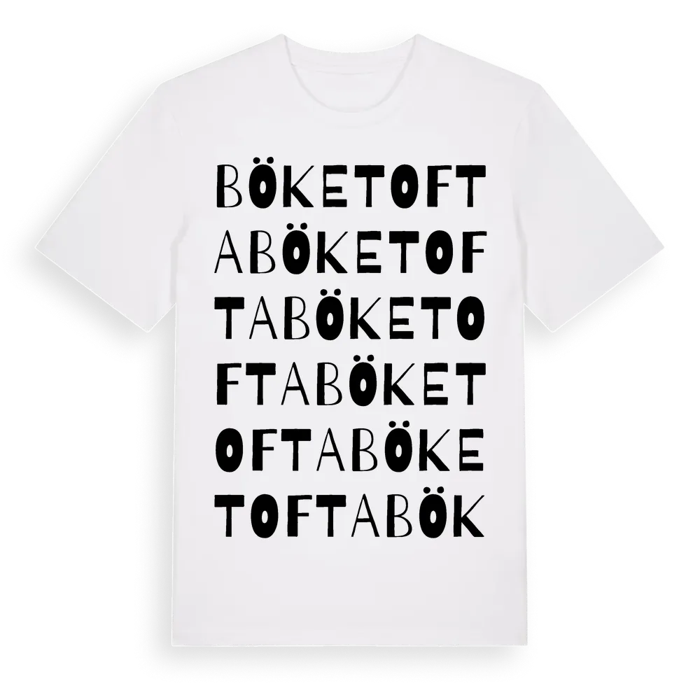 Böketofta ordlek t-shirt är inspirerad av byn Böketofta i Skåne län, Sverige. Tröjan är designad för dig som har en speciell koppling till platsen – oavsett om du bor här, har rötterna här eller bara älskar Böketofta.