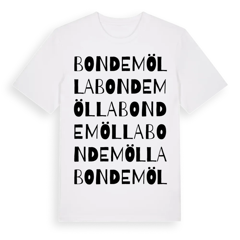 Bondemölla ordlek t-shirt är inspirerad av byn Bondemölla i Skåne län, Sverige. Tröjan är designad för dig som har en speciell koppling till platsen – oavsett om du bor här, har rötterna här eller bara älskar Bondemölla.